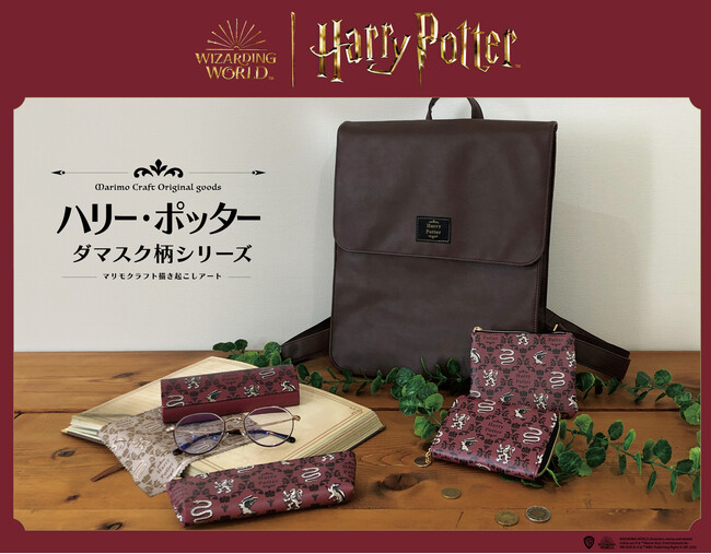 「ハリー・ポッター」シリーズに登場する ホグワーツ魔法魔術学校の4寮のエンブレムをモチーフにした「ハリー・ポッター」ダマスク柄シリーズが登場します。グリフィンドールのライオン、ハッフルパフのアナグマ、スリザリンの蛇、 レイブンクローの鷲といった各寮を象徴する動物をダマスク柄に落とし込んだ、オリジナル描き起こしアートを使用しています。 本シリーズでは、ワインレッドのフェイクレザーを使用したティッシュポーチ、コイン&カードケース、スリムペンポーチ、メガネケース(クロス付き)、ブラウンのフェイクレザーを使用したリュックの5アイテムを展開いたします。