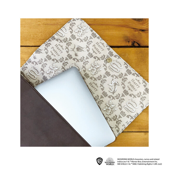 13インチノートパソコンやタブレットが入るサイズです。シンプルな見た目に反して内生地は華やかなダマスク柄となっています。