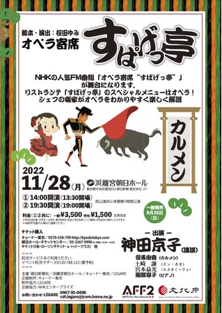 NHKの人気FM番組「オペラ寄席“すぱげっ亭”」 が舞台に!『オペラ寄席 「すぱげっ亭」 <カルメン>』チケット発売!追加出演者決定!