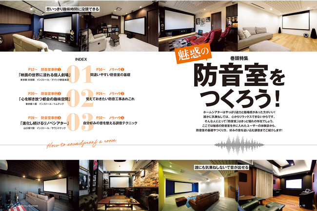 ホームシアターの醍醐味である「迫力」や「臨場感」は、ある程度大きな出力での音の表現によって際立ちます。けれども、周囲への音漏れは非常に気になる・・・。だからこそおススメしたい「防音室」づくり。この特集では、魅惑の防音室を手に入れたユーザーの体験談から、防音室の基礎、つくり方、お好みの音を追求していく室内の「調音」のテクニックなどなど、さまざまなノウハウをご紹介し、防音室づくりを応援します。