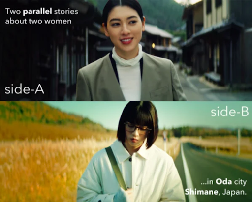 「side-A」「side-B」と2部構成の本作品。性格の全く異なる女性を三吉彩花が演じ分けました。2人はそれぞれ異なる目的で島根県大田市にやってきますが、大田の自然・人々・食や伝統文化と出会う中で、旅の素晴らしさを再発見します。主演は三吉彩花、助演は富田健太郎、大田市の方々にも大勢ご出演頂きました。監督は、様々なアーティストのMVやCM、映画、テレビドラマの演出を数多く手掛けている山岸聖太。また、クリエイティブディレクターとして国際的プロジェクトの経験豊富な近衞忠大が携わっています。本作は、ひとりふた役に初めて挑んだ三吉彩花の演技はもちろん、登場する大田市の皆さんの人柄、美しい映像と音楽で大田の情景を堪能できる作品となっています。