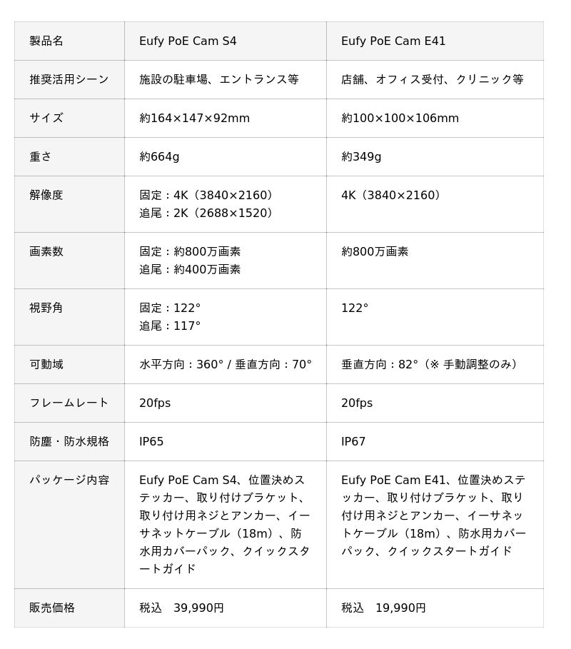 Eufy PoE Cam S4 / Eufy PoE Cam E41 | パワー・オーバー・イーサネット(PoE)カメラ
