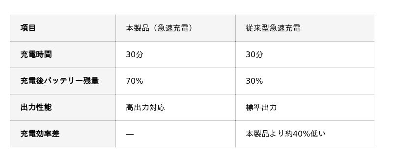 出張前の短時間充電や移動中の電力補充など、時間に追われる現代のライフスタイルに寄り添います。