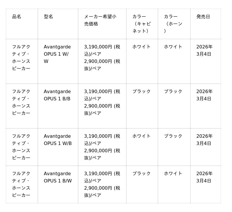 ドイツ Avantgarde(アバンギャルド)は、昨年末に発表された同社の新たな次元となるコンパクトなフルアクティブ・ホーンスピーカー「OPUS 1」を日本国内で発売開始いたします。