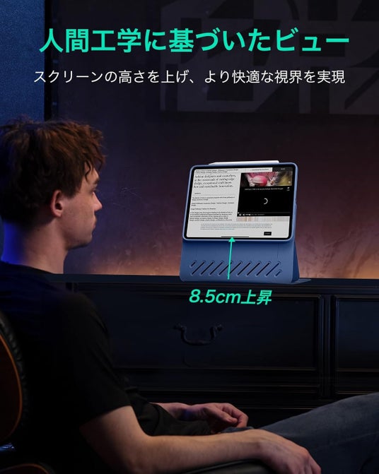 ESR Shift マグネットケースは、iPad Proをノートパソコンのように活用できる多機能カバーです。最大の特徴は、マグネットで簡単に取り外し可能なキーボード設計で、縦置き・横置きスタンドに対応し、9段階の角度調整が可能です。PencilやUSB-Cを完全対応し、Shiftシリースらしいブルー仕上げで、動画視聴やタイピング作業を快適に切り替えられます。軽量ながら耐久性が高く、iPadをしっかり保護します。