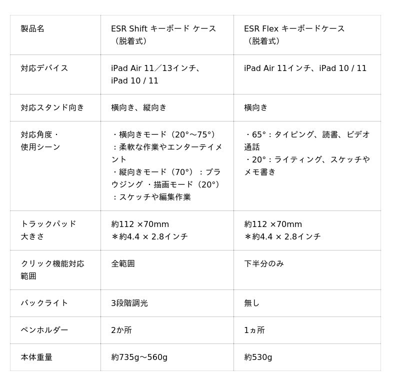 ■ESR iPad キーボードケース製品比較