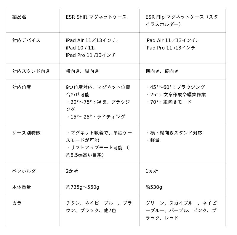 ■ESR iPadケース製品比較