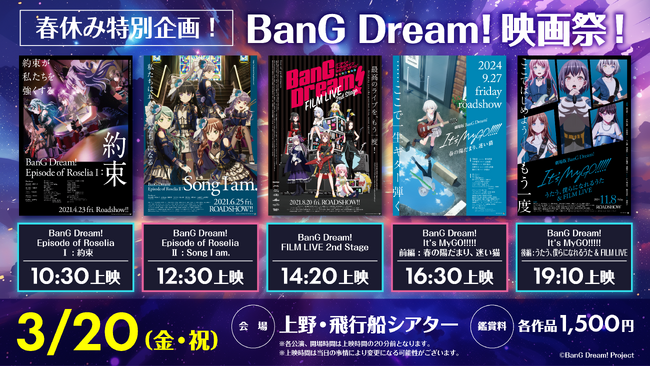 『春休み特別企画!BanG Dream! 映画祭!』の開催が決定!BanG Dream! のこれまでの映画作品を一挙上映!