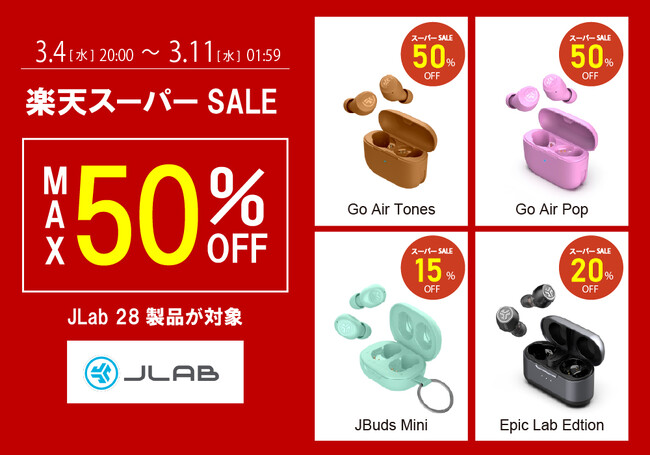 【最大50%OFF│全28製品】ハイエンドモデルから定番品まで勢ぞろい。JLab製品が楽天スーパーSALEでお買い得に!